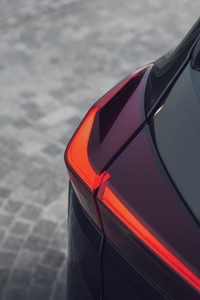 À l'arrière, se trouve ce qui est pour moi la plus belle pièce extérieure : le phare arrière en relief. Ce décroché permettrait de favoriser le déplacement du flux d'air et donc l'aérodynamisme. Si cela est difficile à apercevoir, il sera impossible de manquer le bandeau de signature lumineuse s'amincissant au centre et donnant une réelle identité à l'UX.